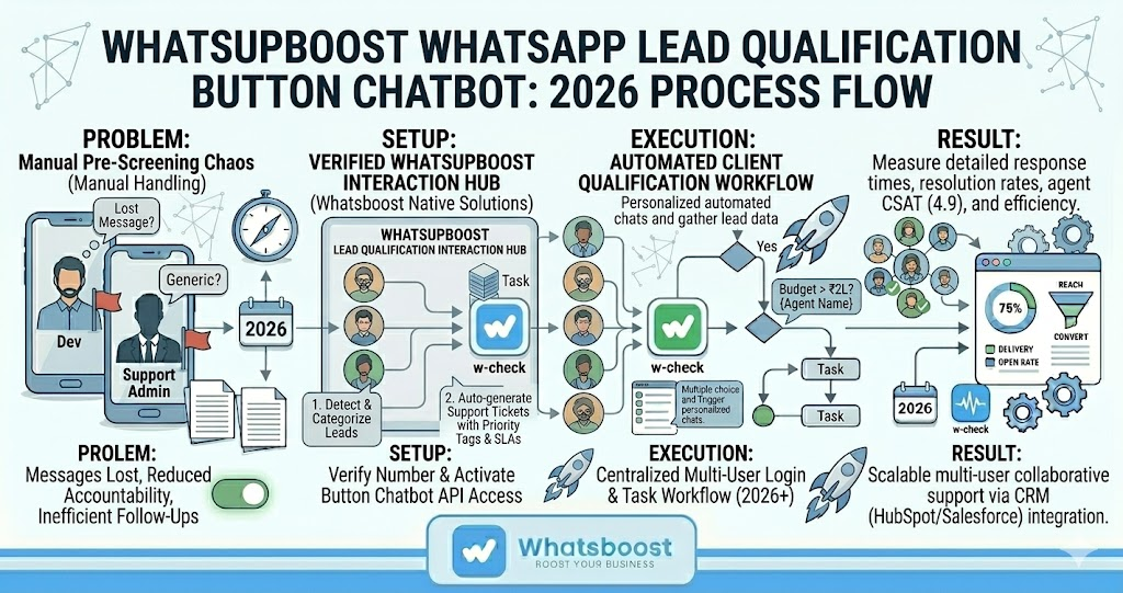Learn how to automate client pre-screening using a WhatsApp lead qualification button chatbot in 2026. Discover setup steps, practical workflows, and how Whatsboost helps Indian businesses qualify leads intelligently on WhatsApp.