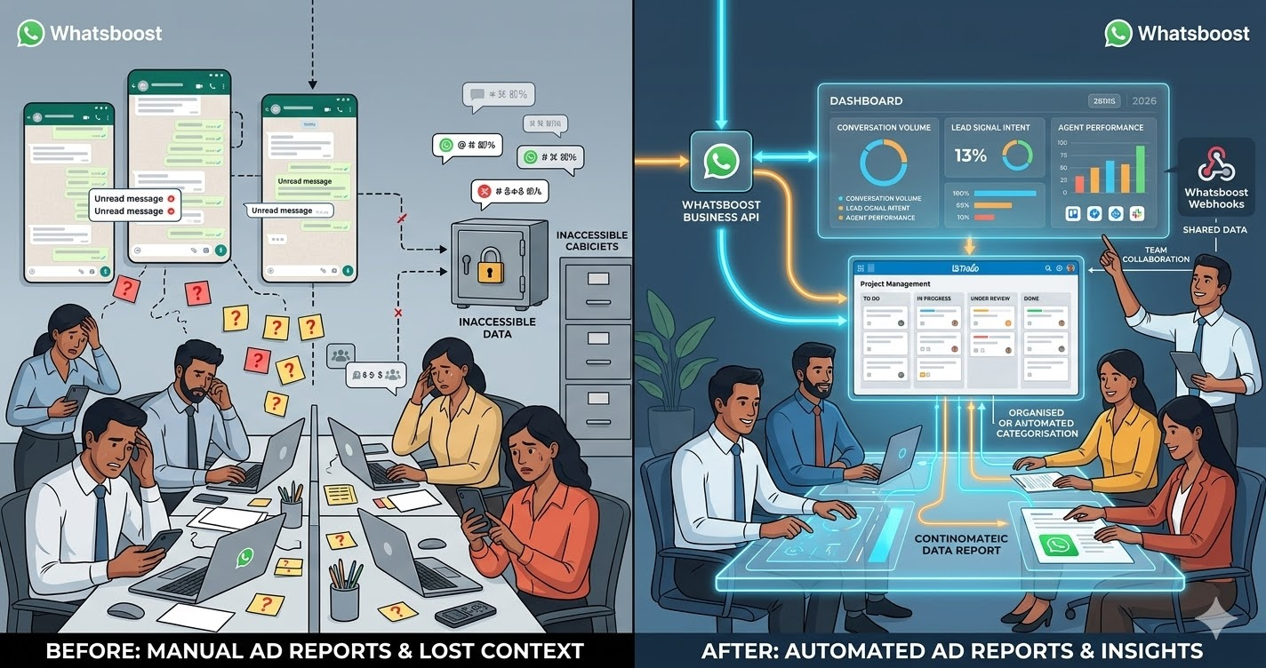 The decision to pause a campaign, increase a budget, or escalate to a client can happen on WhatsApp in real time — rather than being delayed until the next scheduled dashboard review or team meeting. Whatsboost provides the WhatsApp Business API and automation infrastructure that makes this real-time reporting delivery reliable and scalable. Visit Whatsboost.in to explore the platform.