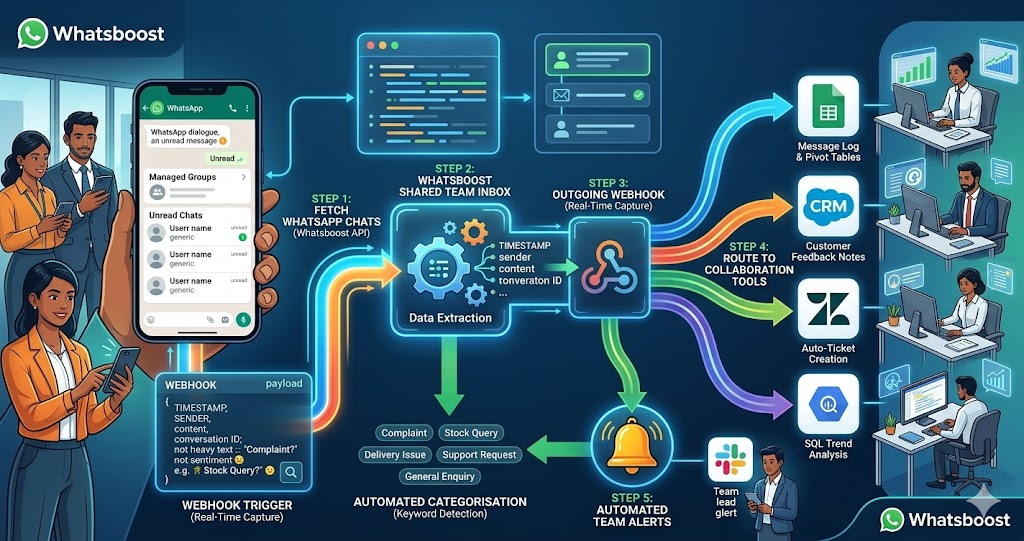 Use Whatsboost's shared team inbox alongside the individual rep alerts — so the team lead has visibility into all incoming lead alerts and can reassign or escalate if the primary rep is unavailable. Visit Whatsboost.in to explore routing and inbox management capabilities.