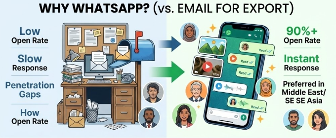 Email has long been the default follow-up channel for Indian exporters. But in 2026, its limitations are well-documented: low open rates, cluttered inboxes, and slow response times from buyers who are mobile-first in their communication habits.
