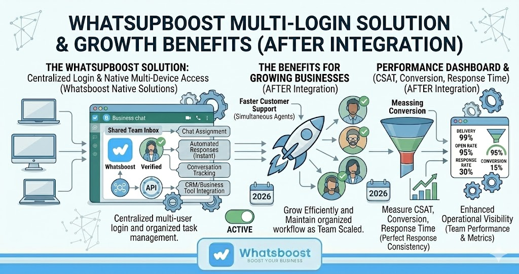 Learn how WhatsApp Business Multiple Login works for growing businesses. Discover how WhatsApp Automation and Whatsboost help teams manage conversations, collaborate, and scale customer communication.