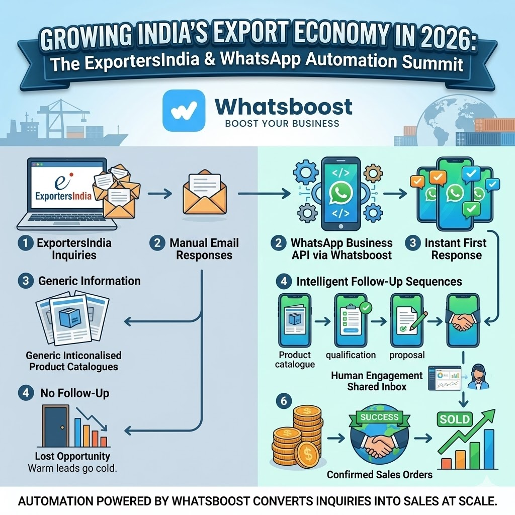 ExportersIndia + WhatsApp Automation: The Ultimate Guide for Indian Exporters in 2026 | Whatsboost